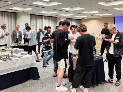 研修のあとは立食パーティーで